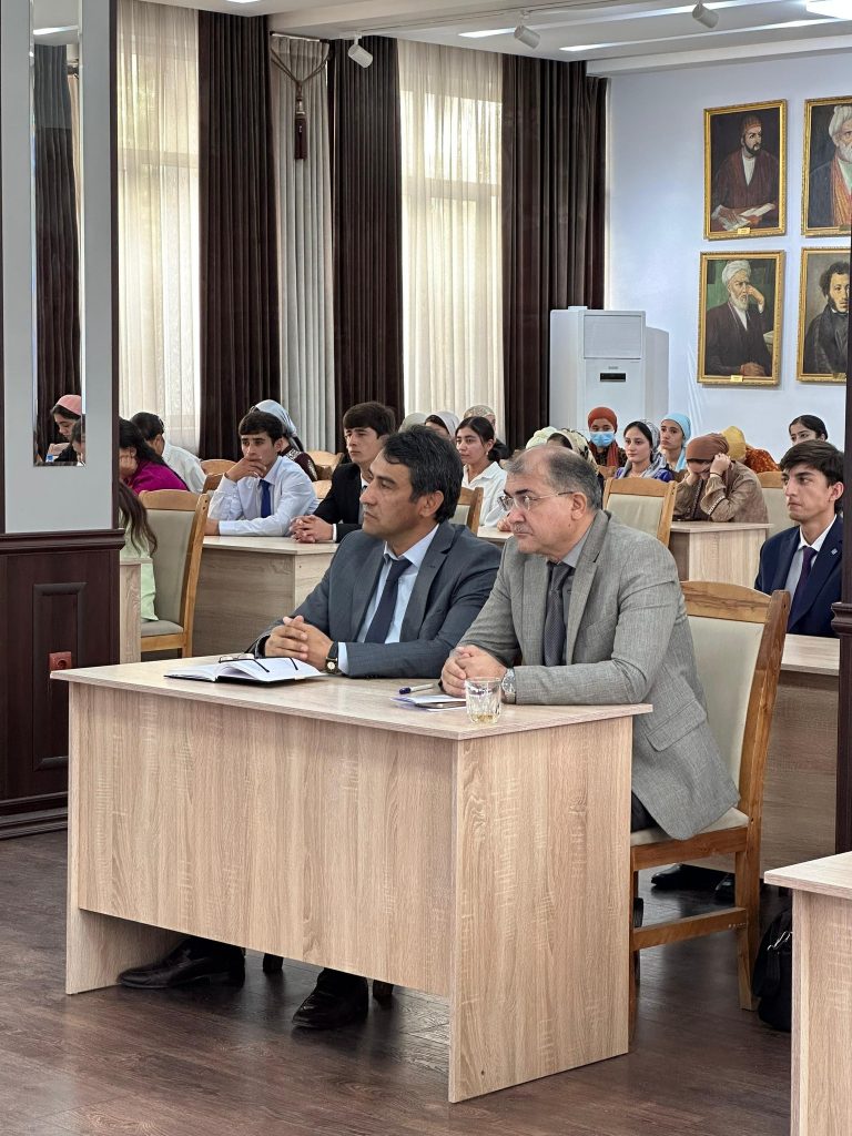 Профессори кафедраи забони тоҷикӣ ва усули таълими забон ва адабиёти тоҷики факултети филология Шаҳбоз Кабиров вобаста ба мавзуи “Назаре ба раванди бадалшавии забони тоҷики аз сохтори флективӣ ба сохтори аналитикӣ” баромад намуд.